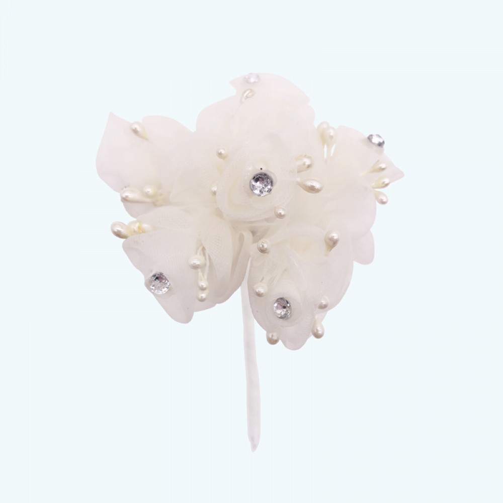 2.5" Diameter Rhinestone Organza Flower 6X12 | Ivory