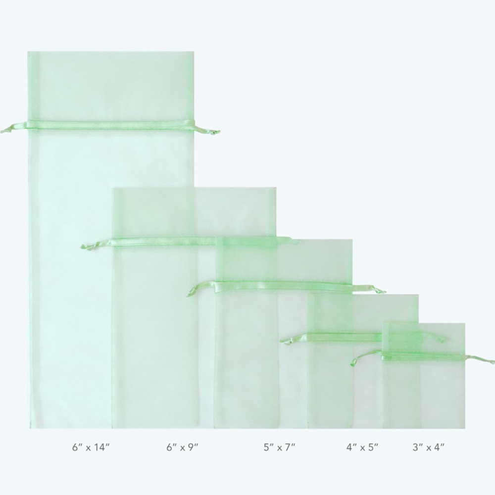 - Organza Pouch: 3"x4", 4"x5", 5"x7", 6"x9", 6"x14"
