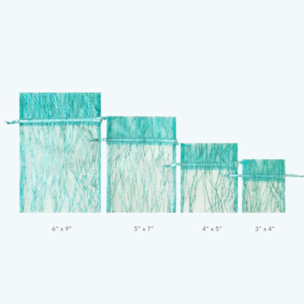 - Sparkle Strip Organza Pouch: 3"x4", 4"x5", 5"x7", 6"x9"